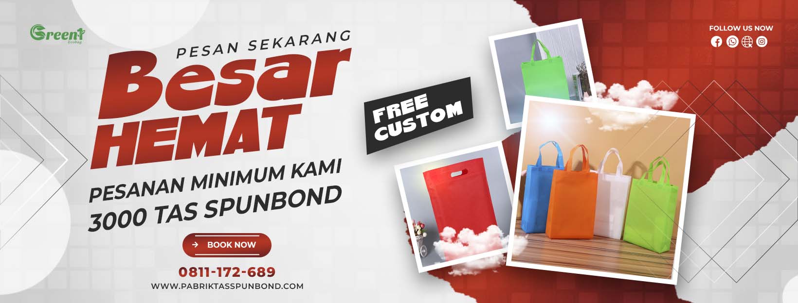 Tas spunbond hajatan dengan berbagai pilihan model, dari serut, pita samping, klep, velcro, ransel, bermotif dan bertekstur.