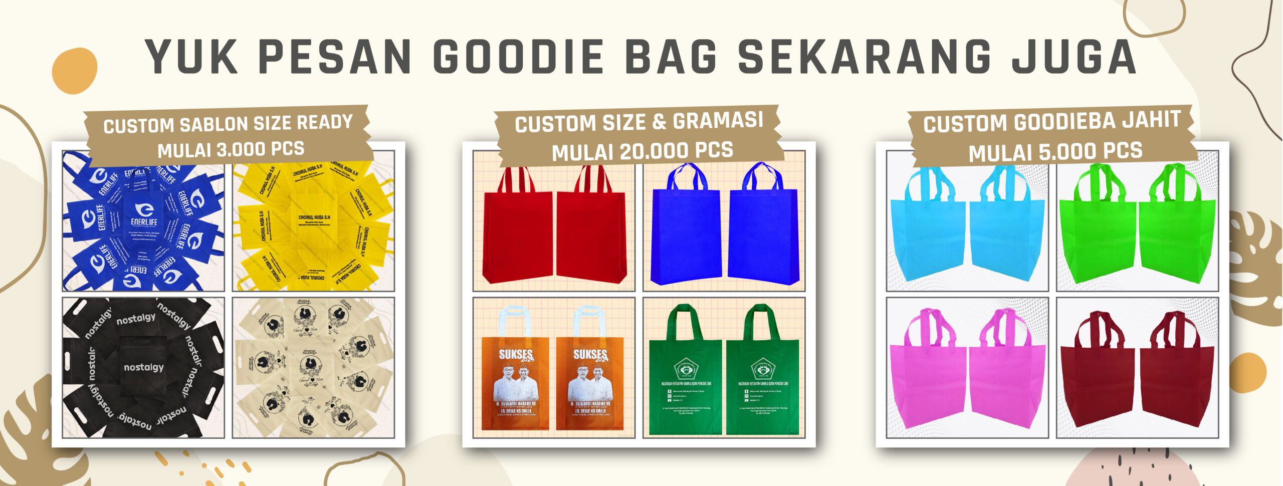 Custom Bag adalah tas spunbond dengan desain yang bisa disesuaikan selera Anda, bisa custom logo, ukuran, dan desain.